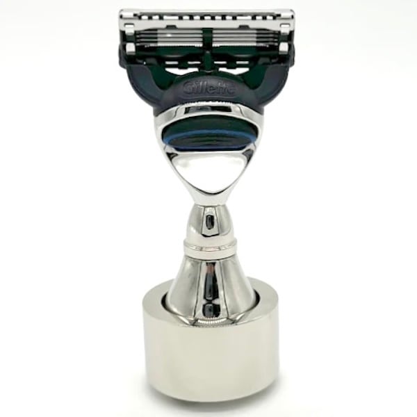 ちょうどシェービングブラシほどのサイズ感ですが金属の重みによって持った感触も心地よい。デザインはどこかレトロ感も漂うのに刃の部分は最新のジレット・フュージョンシリーズの刃が使用されているので剃り心地は最新同様に滑らか。(替刃はドラッグストア等で簡単に買えるのも嬉しいです。)