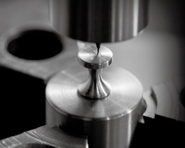 ピストンヘッドの重厚、空冷フィンの優美、ディレーラーの繊細、鍛造ナイフの緊張、整備器具の整然、等々。我ら男たちは、何故にこの質感に心奪われるのであろうか。現代に生きるカフリンクスNOCは、まさにこのソリッドな感覚を腕に留めようとしたプロダクツ。ファクトリーの一角、ひとつひとつ金属塊から精密機械によって削り出されるベースとヘッド。