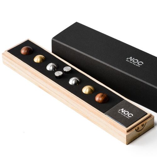 カフリンクス【NOC】は、ヘッドとベースのネジ式2ピース構造により、様々なヘッドのバリエーションをお楽しみ頂けます。この『カフリンクス【NOC】3H+1』の商品には、ステンレス、真鍮、ウッドの3種類が同封されております。