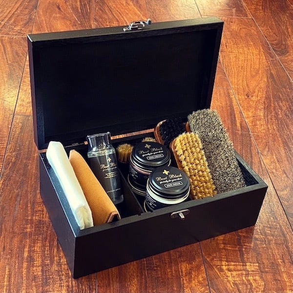 なによりカッコいい木箱にきっちり入ったシューケ用品があれば、テンションも上がります!!(これがシューケアに一番大事かもです。笑)